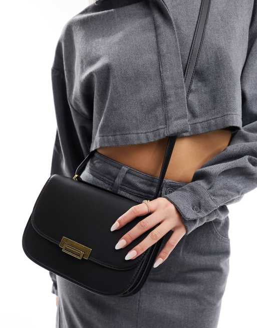 ASOS DESIGN - Crossbody tas met metalen details van geborsteld goud in zwart