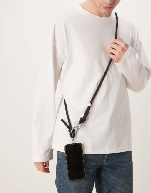 ASOS DESIGN - Crossbody telefoonhouder met koord in zwart