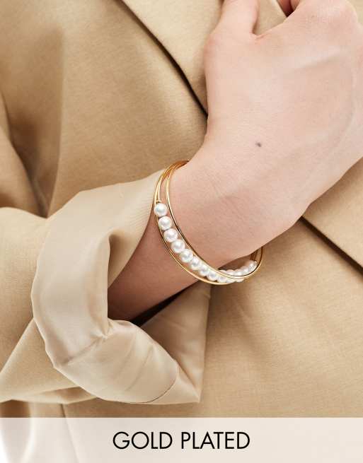 ASOS DESIGN Curve - 14k vergulde brede armband met inzetstuk met imitatieparels