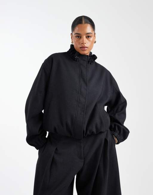 ASOS DESIGN Curve - Elegant trainingsjack met opstaande boord in antracietgrijs, deel van co-ord set