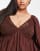 ASOS DESIGN Curve - Gesmokte top met V-hals, gehaakte cups en peplumzoom in chocoladebruin