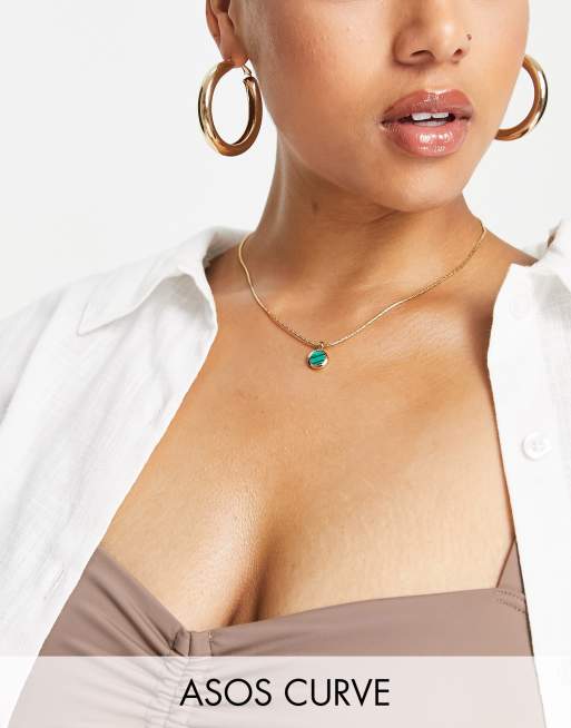 ASOS DESIGN Curve - Ketting verguld met 14k goud en met malachiet-hangertje
