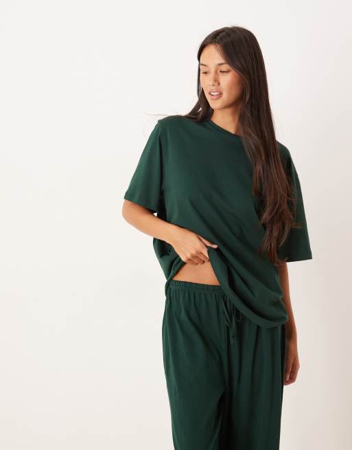 ASOS DESIGN Curve - Mix en match - Oversized pyjamashirt van katoen in bosgroen