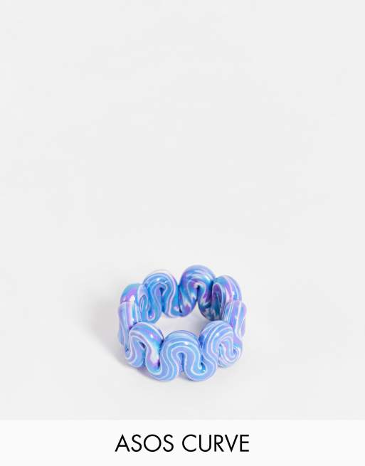 ASOS DESIGN Curve - Ring met ontwerp van dik slingerend kunststof in gemarmerd lila en blauw