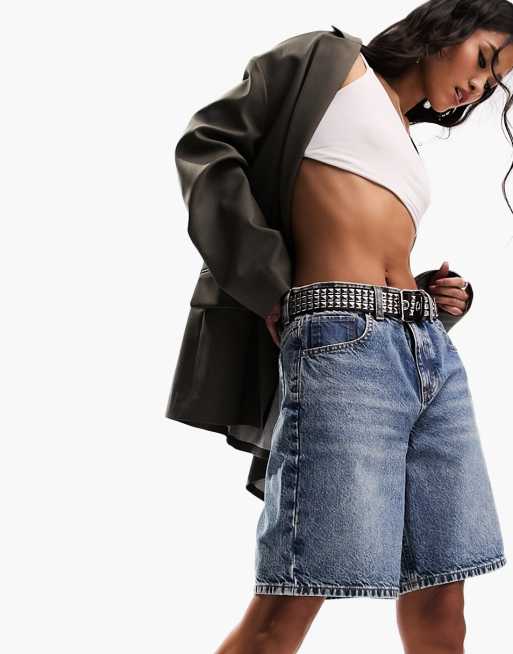 ASOS DESIGN - Denim bermudashort in mid-wash blauw