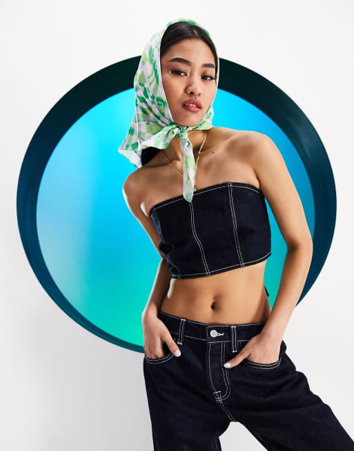 ASOS DESIGN - Denim bralette met blauwe wassing, deel van co-ord set