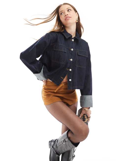 ASOS DESIGN - Denim jack met omslag in indigo