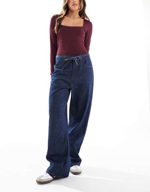 ASOS DESIGN - Denim jeans met gestrikte taille in middenblauw