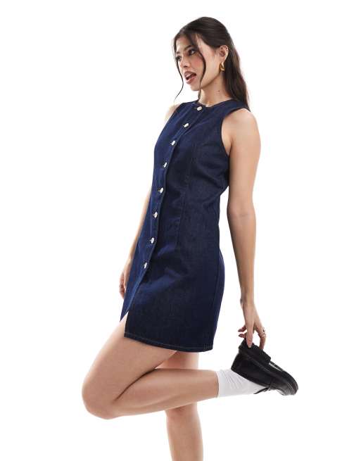 ASOS DESIGN - Denim jurk met knopen in indigo