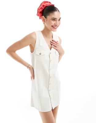 ASOS DESIGN - Denim mini giletjurk met knoopsluiting in ecru