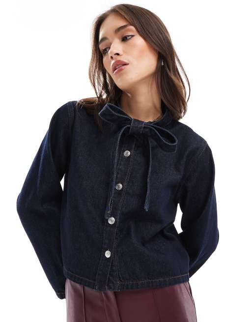 ASOS DESIGN - Denim overhemd met strikkraag in indigo