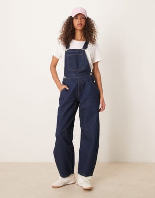 ASOS DESIGN - Denim tuinbroek met wijde ronde pijpen in indigo
