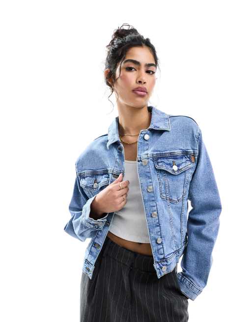ASOS DESIGN - Denim western jack in mid-wash blauw