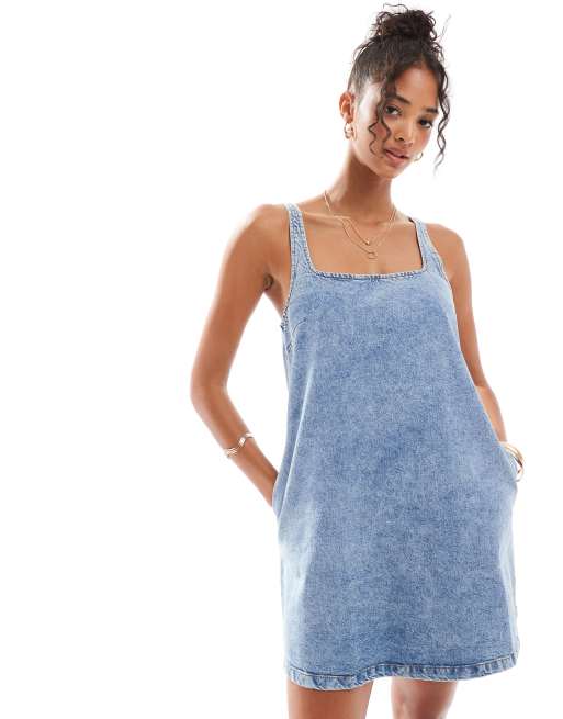 ASOS DESIGN - Denim zonnejurk in mid-wash blauw