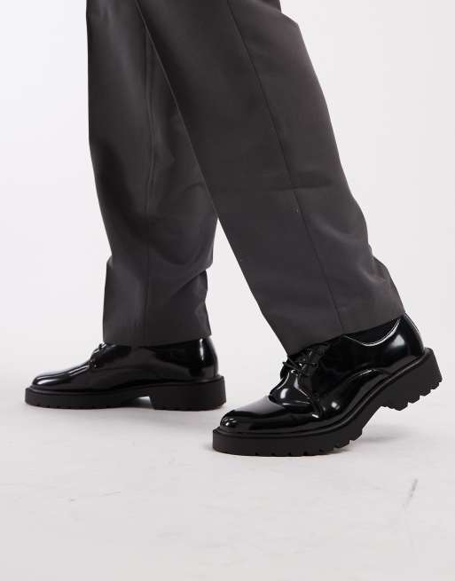 ASOS DESIGN - Derby schoenen in zwart lakleer met veters en zool met profiel