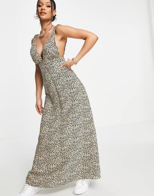 ASOS DESIGN - Diep uitgesneden maxi jurk met dierenprint