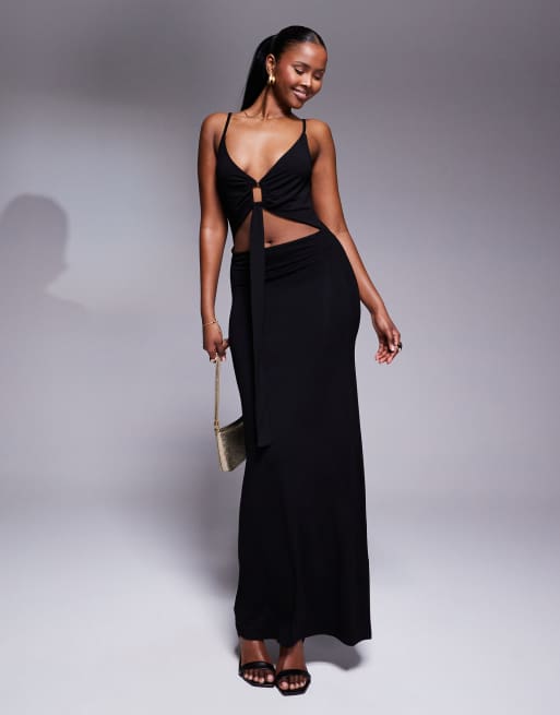 ASOS DESIGN - Diepuitgesneden maxi jurk met uitsnijdingen en rimpeleffect in zwart