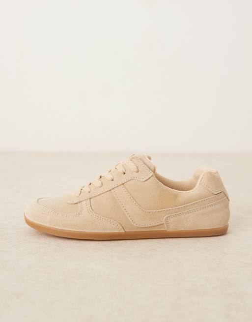 ASOS DESIGN - Diligent - Smalle suède sneakers met veters in zandkleur