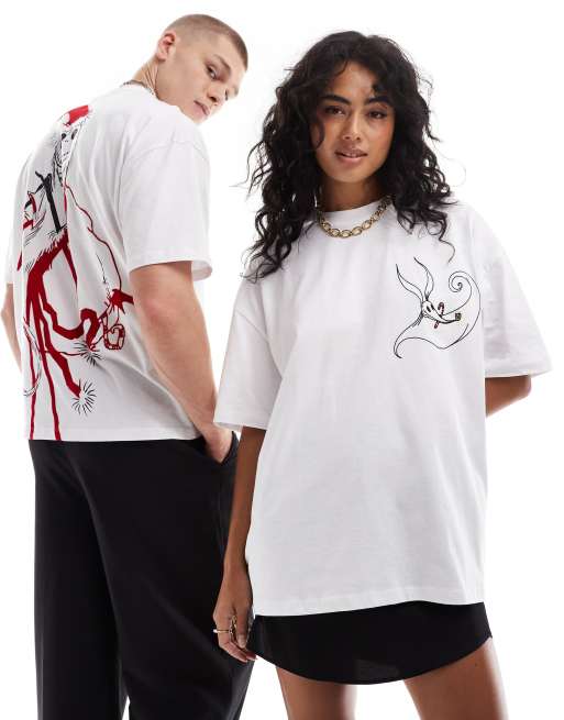 ASOS DESIGN - Disney - Kerstmis - Oversized T-shirt met The Nightmare before Christmas-prints in wit