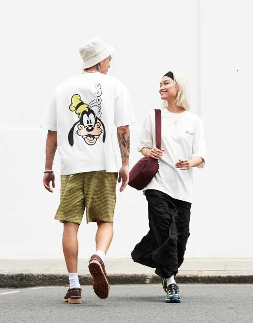 ASOS DESIGN - Disney - Uniseks oversized T-shirt met Goofy prints in wit