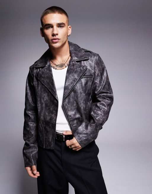 ASOS DESIGN - Distressed cropped bikerjack van imitatieleer in zwart