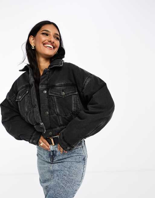 ASOS DESIGN - Doorgestikt denim jack in zwart met wassing
