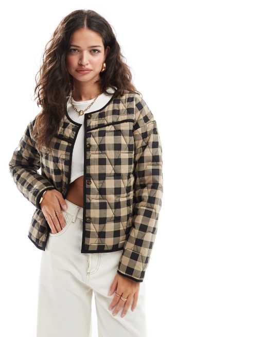 ASOS DESIGN - Doorgestikt jack met gingham ruit in bruin