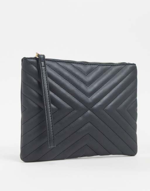 ASOS Design - Doorgestikte clutch met rits bovenaan