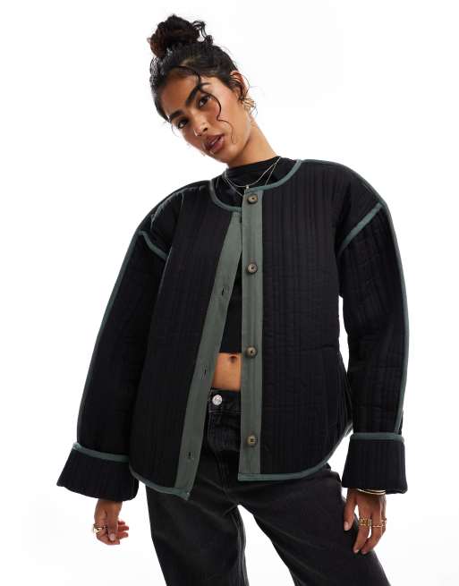 ASOS DESIGN - Doorgestikte jack met contrasterend detail in zwart en kaki