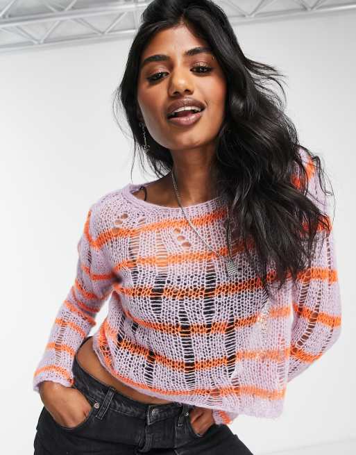 ASOS DESIGN - Doorschijnend gebreide trui met gestreept patroon in lila