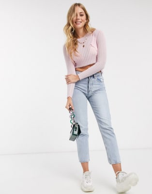 ASOS DESIGN - Doorschijnende gebreide comb-set met ribbels in roze