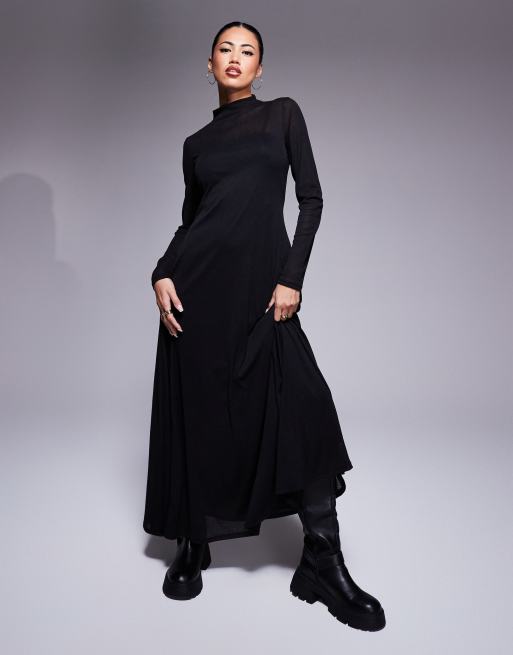 ASOS DESIGN - Doorschijnende maxirok met lange mouwen en godet-inzetstukken in zwart