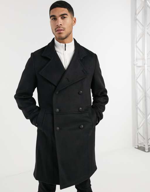 ASOS DESIGN - Double-breasted overjas van wolmix met militair detail in zwart
