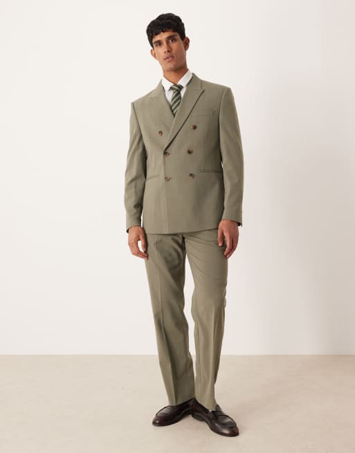 ASOS DESIGN - Double-breasted pak met normale pasvorm in kaki