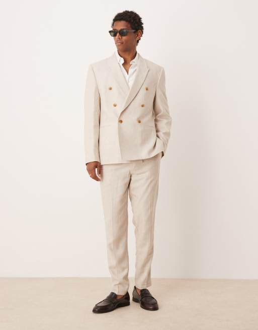 ASOS DESIGN - Double breasted pak van linnenmix met normale pasvorm in naturel beige