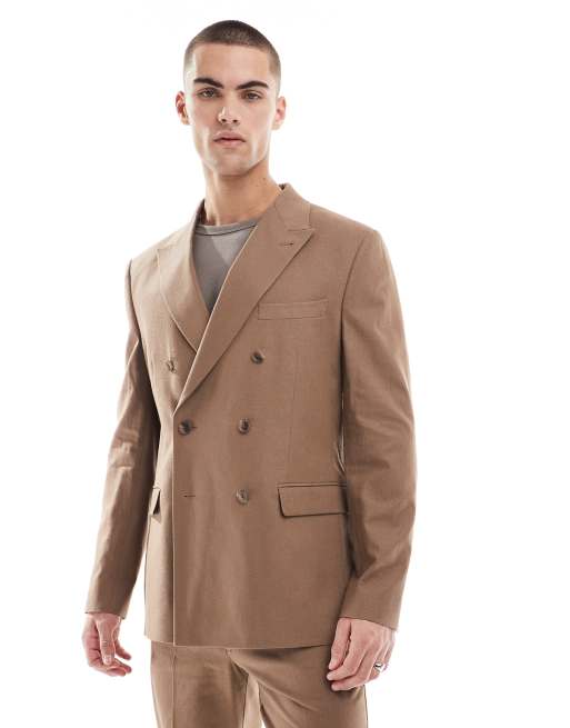 ASOS DESIGN - Double breasted regular-fit colbert van linnenmix in bruin
