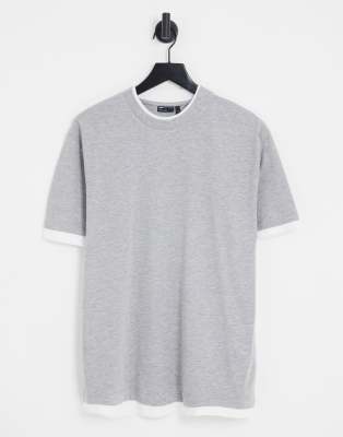 ASOS DESIGN - Dubbellaags T-shirt in gemêleerd grijs