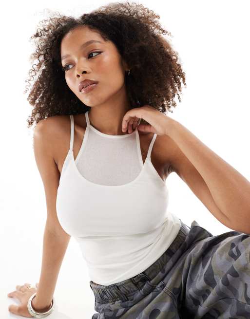 ASOS DESIGN - Dubbellaagse tanktop van mesh en gladde stof in ivoor