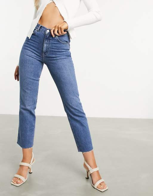 ASOS DESIGN - 'Effortless' - Cropped kick jeans met wijd uitlopende pijpen in mid wash