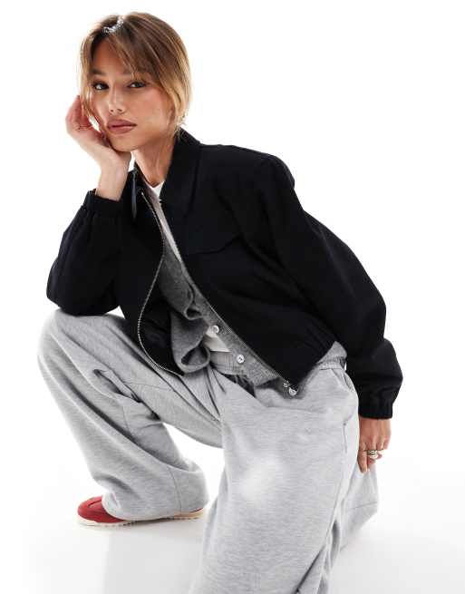 ASOS DESIGN - Elegant bomberjack met kraagje en zakdetail in zwart