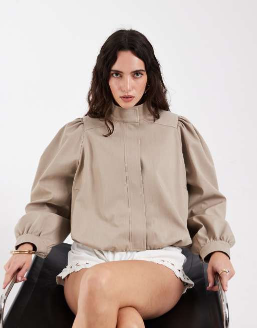 ASOS DESIGN - Elegante blazer met pofzoom en textuur in stone