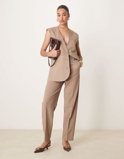 ASOS DESIGN - Elegante broek met rechte pijpen van gemengde stof in bruin, deel van co-ord set