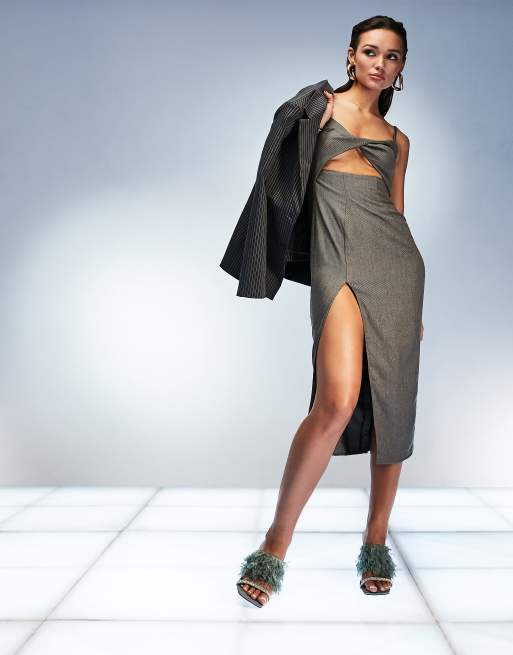 ASOS DESIGN - Elegante midi-jurk met gedraaide voorkant in visgraatmotief
