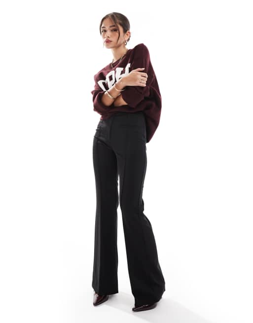 ASOS DESIGN - Elegante skinny flare-broek van gladde stof in zwart