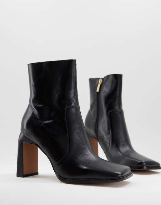 ASOS DESIGN - Embrace - Leren laarzen met hoge hak en vierkante neus in zwart