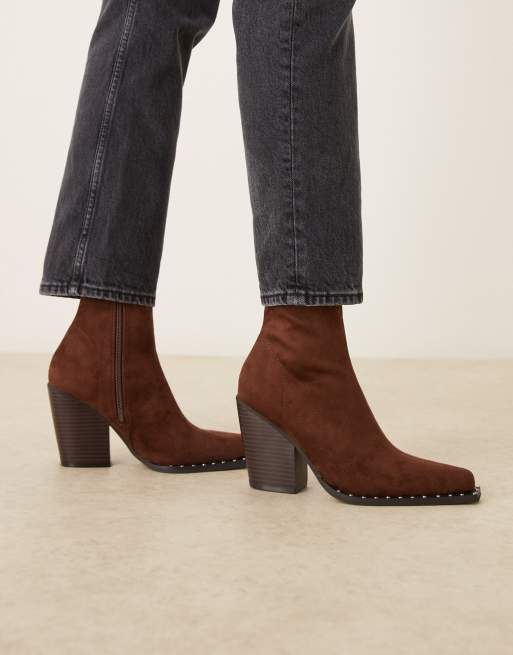 ASOS DESIGN - Emrys - Western enkellaarzen van suedette in chocoladebruin