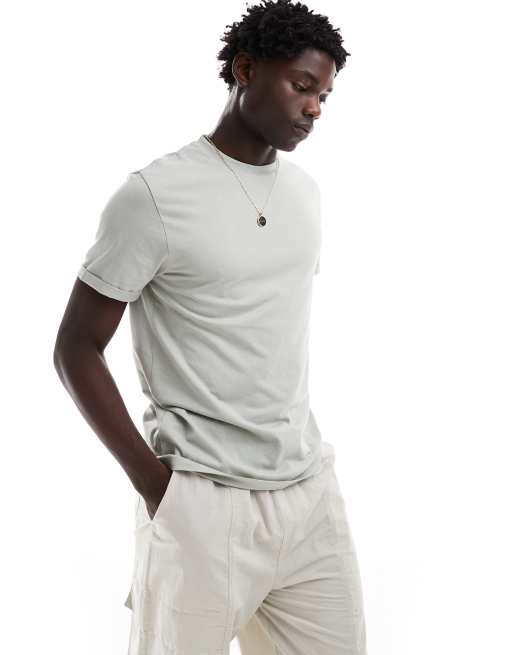 ASOS DESIGN - Essential - T-shirt met ronde hals en omgeslagen mouwen in lichtgroen