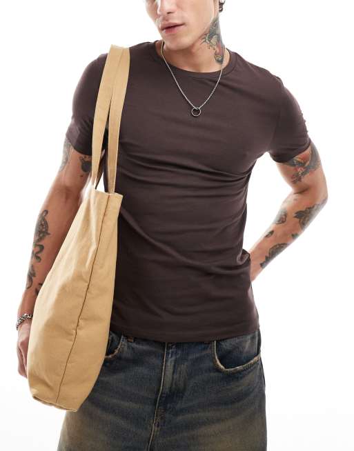 ASOS DESIGN - Essentials - Geribbeld muscle-fit T-shirt in bruin