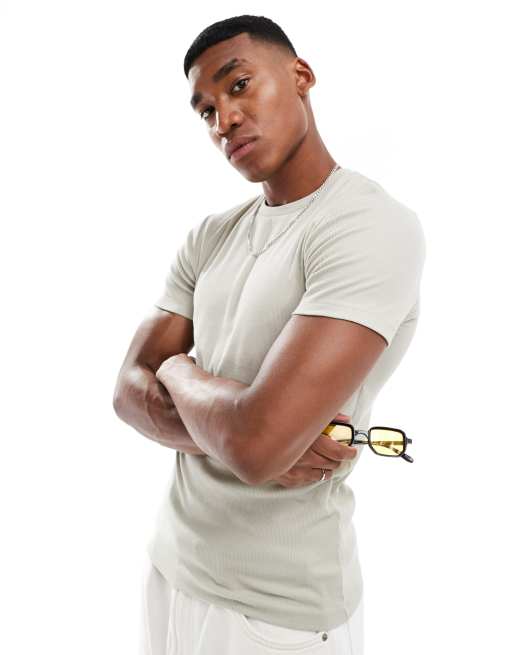 ASOS DESIGN - Essentials - Geribbeld muscle-fit T-shirt in stone