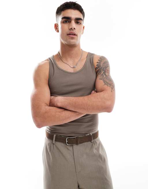 ASOS DESIGN - Essentials - Muscle fit hemdje in bruin